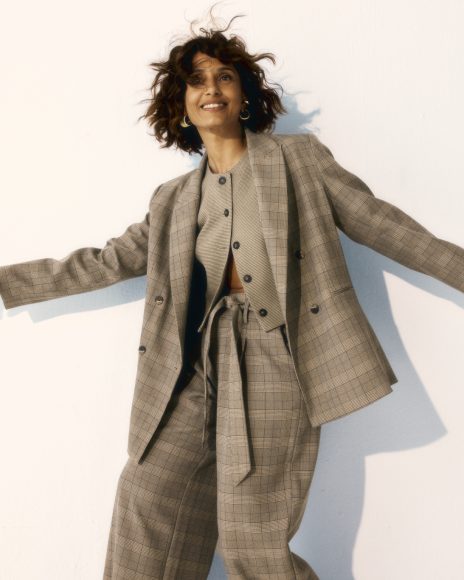 A paleta de cores percorre tons neutros sofisticados e atemporais, como bege, areia, cinza, marinho e verde musgo, abrindo espaço para variações de estampas clássicas como xadrez e florais em versão Liberty. Nos tecidos, a coleção combina sarjas encorpadas, malhas estruturadas, bases de alfaiataria com toque macio e tricôs que abraçam o corpo sem pesar, reforçando o conforto que a temporada pede.
