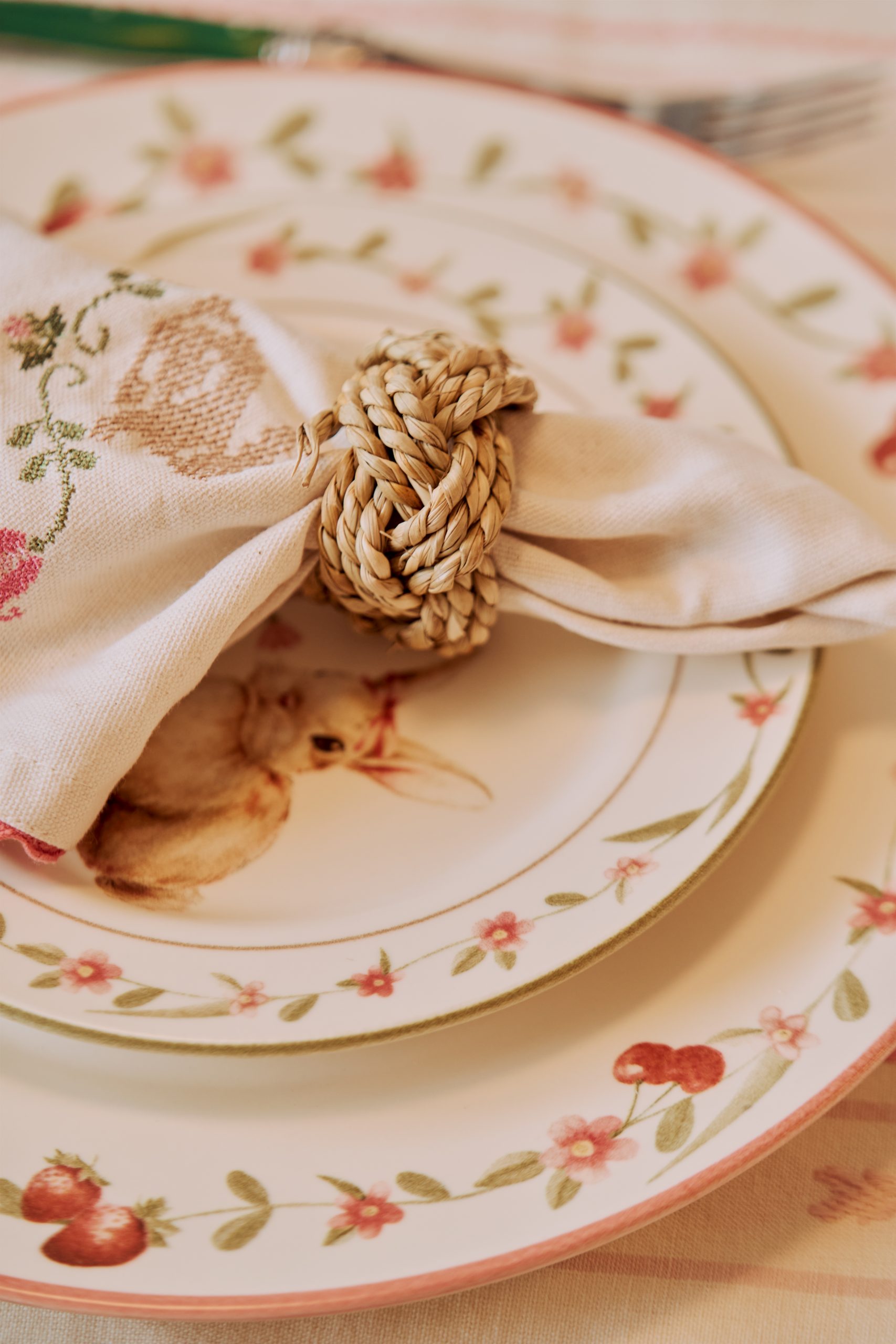 Para servir o seu bolo com um toque a mais de Páscoa, vale apostar nos pratinhos de sobremesa com detalhes de coelho e decorações de mesa posta que dão um charme a parte.